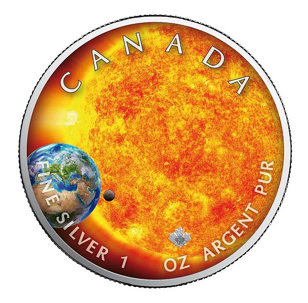 Jednouncová ryzí (99,9 %) stříbrná mince z nové série „ The Universe – Vesmír“ je věnována jako sedmé minci v pořadí Our Sun. Slunce je téměř dokonalá koule horké plazmy ve středu naší sluneční soustavy. Na jeho povrchu panují teploty kolem 5700 stupňů Celsia, ze kterých proudí světlo a teplo do vesmíru. Průměr Slunce je asi 1,39 milionu kilometrů.