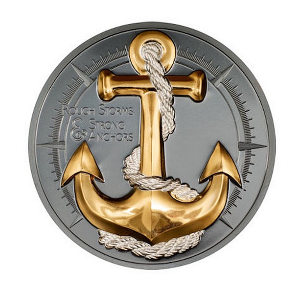 Dvouuncová ryzí (99,9 %) stříbrná mince v black (proof) kvalitě zobrazující kotvu. Série „Journey – cesta“ s nápisem na minci „Rough Storms and Strong Anchor“ podtrhuje jak kotva má široký význam. Symbolizuje stabilitu, pevnost a ochranu, protože udržuje loď bezpečně ve vodě a zabraňuje jejímu unášení. Znamená stabilitu v těžkých časech, ale také souhru žízně po dobrodružství a touhy po bezpečném návratu. Často jej nosí lidé, kteří mají vztah k moři nebo si touhu po svobodě spojují s bezpečným přístavem. V námořních kruzích i mimo ně se kotva používá jako talisman pro štěstí, který symbolizuje ochranu před nebezpečím. Black Proof na pozadí, částečné zlacení kotvy a další matné designové prvky dělají z této mince něco velmi výjimečného.