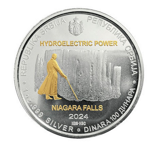 - NIKOLA TESLA VODNÍ ELEKTRÁRNA NIAGÁRSKÉ VODOPÁDY Srbský vynálezce coin Hydroelectric Power Niagara Falls – 1 oz stříbrná mince pozlacená