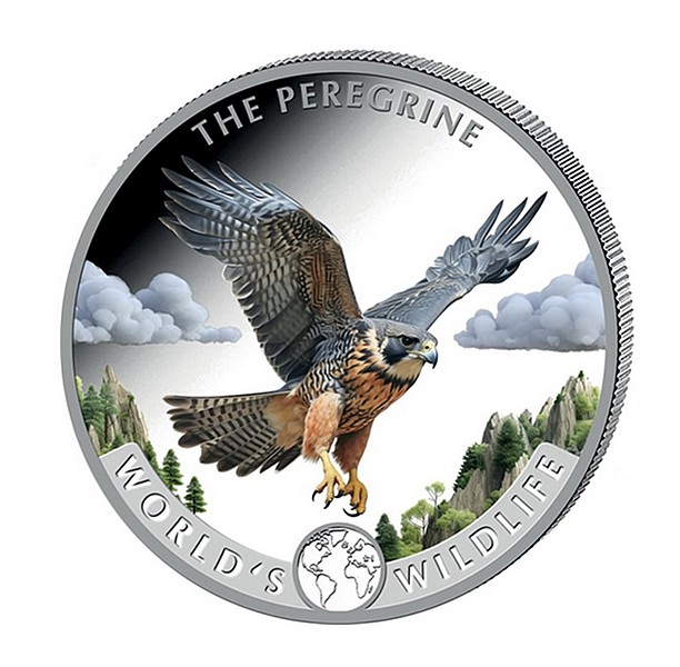 Jednouncová ryzí (99,9 %) stříbrná mince z řady světová divoká zvěř s vyobrazením sokola stěhovavého. Jedná se o šestou minci z nové série.